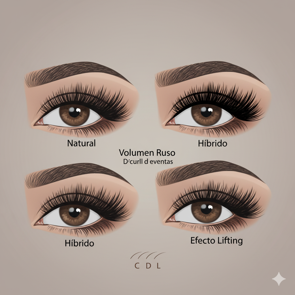 - Volumen ruso o híbrido: más denso y con un acabado sofisticado, perfecto para eventos o looks más intensos.